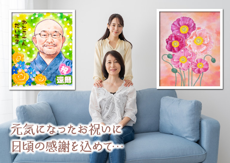 退院のお祝い、元気付けのプレゼント、応援のギフトとして、似顔絵、アートを贈る…もらった方の笑顔を思い浮かべながら、もっと生き生きと元気に過ごしてもらいたい。そんなあなたの気持ちをお伝えするアイテムをご用意いたしました。